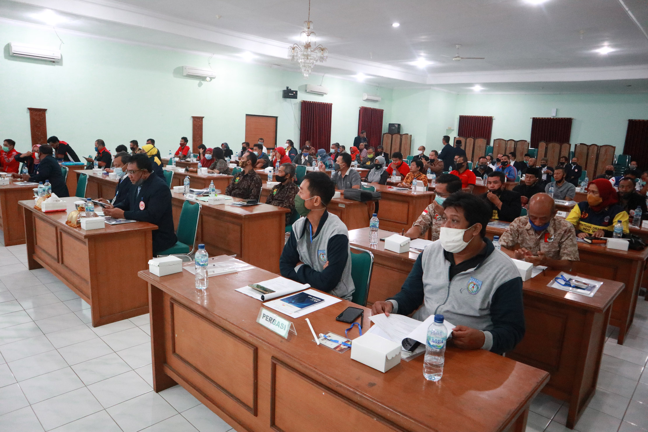 Rapat dilaksanakan dengan aturan protokol kesehatan ketat. Sebelum masuk ruangan, seluruh peserta diwajibkan cuci tangan atau menggunakan hand sanitizer yang telah disediakan panitia, pemeriksaan suhu badan, serta wajib memakai masker atau faceshield.