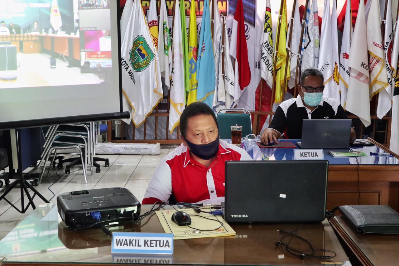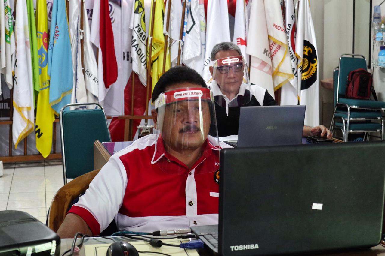 Hal tersebut disampaikan saat menjawab pertanyaan yang dilontarkan Ketua KONI Kota Madiun Tatok Raya, tentang protokol kesehatan dalam menjalankan latihan selama pandemi saat rapat Anggota Tahunan KONI Jawa Timur secara virtual, Kamis (25/6/2020) siang. Rapat secara Video Conference itu diikuti oleh Ketua/Pengurus KONI 38 daerah, Kota/Kabupaten se-Jawa Timur.